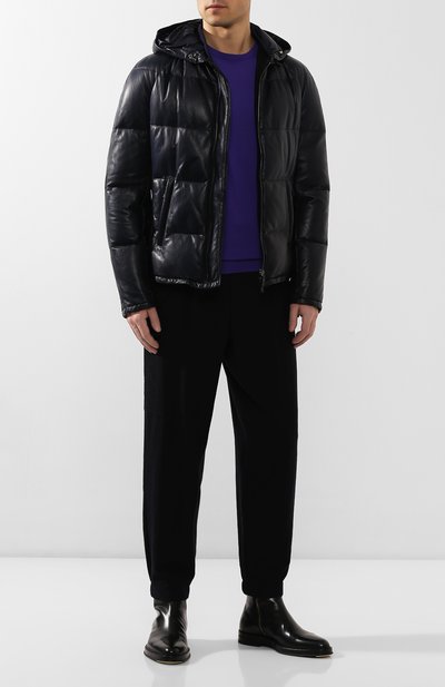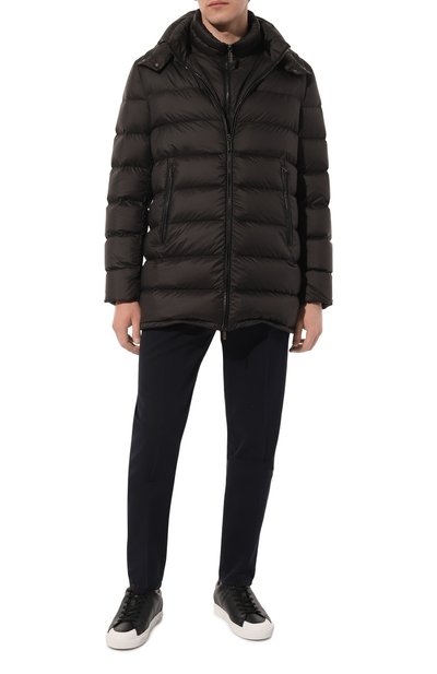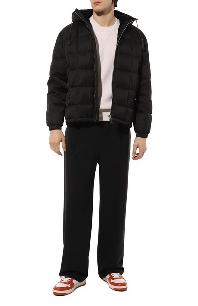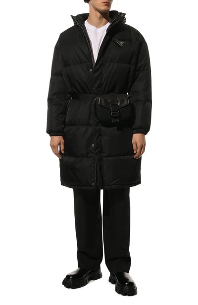 В коллекции сезона осень-зима, которая стала первой совместной мужской для Миуччи Прады и Рафа Симонса, дизайнеры посмотрели на вещи из повседневного гардероба под новым углом. Например, для пуховика базового черного цвета они выбрали не совсем характерный материал — мелкозернистую кожу. Ее бережно выделали вручную, чтобы она получилась эластичной и нежной: так с ней можно было работать, словно с тканью. Верхний слой изделия защищает от снега, моросящего дождя и ветра, а тонкий слой утеплителя сохраняет тепло. Комфорт в ветреную погоду обеспечат воротник-стойка и спрятанный в него капюшон.
