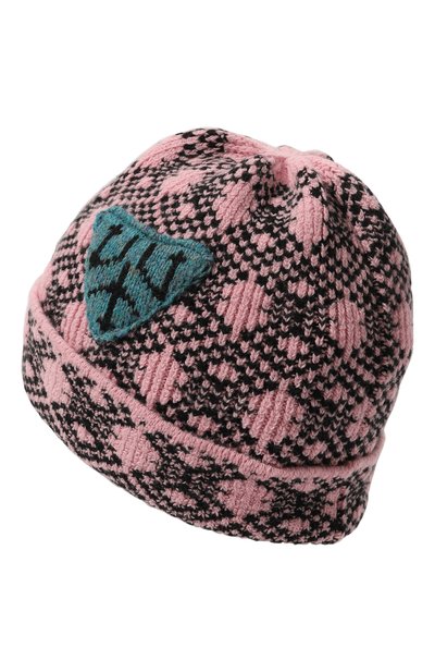 Короткая красная бини станет заметным акцентом в образе. Выделиться шапке позволяет как цвет, так и черный геометрический узор, который создали по мотивам орнаментов из 1960-х. Для изготовления аксессуара с отворотом мастера марки использовали мягкую пряжу, в которой шерсть объединили с нежным кашемиром.