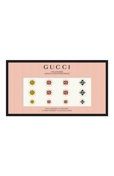 Стикеры сделают дизайн ногтей по-настоящему уникальным. В набор включили четыре слайда со множеством элементов разной формы и размера, которые можно комбинировать, создавая уникальный маникюр. Внешний вид наклеек громко заявляет о принадлежности к бренду. Отсюда — текстовый логотип или GG-монограмма, как на фирменном ромбовидном орнаменте.