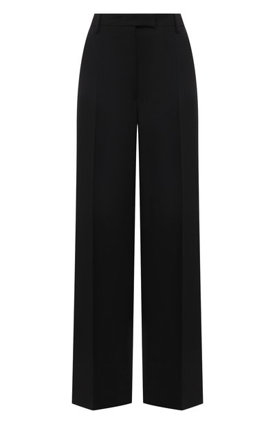 Черные брюки со стрелками — универсальный солдат в базовом гардеробе. Такая вещь будет уместно смотреться и в офисе, и на торжественном мероприятии. В капсульной коллекции Holiday Миучча Прада и Раф Симонс преобразили классическую модель в мужском стиле. Ее сделали женственнее за счет мягких линий, высокой посадки и широкого пояса, создающих акцентированно приталенный силуэт. Изделие сшили из тонкой ткани на основе нежного кид-мохера и длинноволокнистой рунной шерсти.