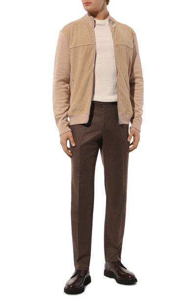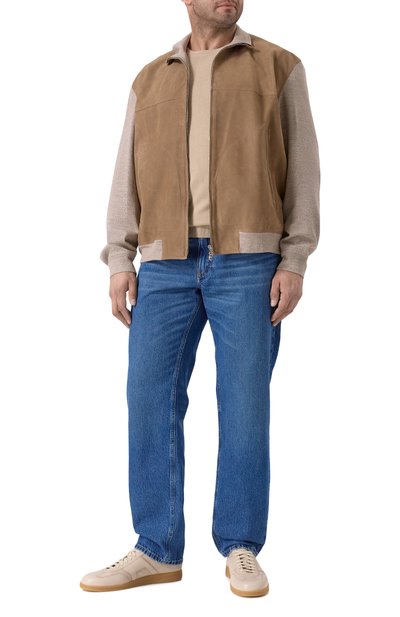 Миучча Прада и Раф Симонс придали кардигану спокойного песочного оттенка черты бомбера, и дело не только в широких эластичных деталях. Дизайнеры украсили модель из весенне-летней коллекции вставками из прочной замши, бережно выделанной вручную до мягкости. Само изделие мастера бренда связали из премиальной кашемировой пряжи, которой нет равных в уникальном сочетании свойств — особенной нежности, легкости и теплу.