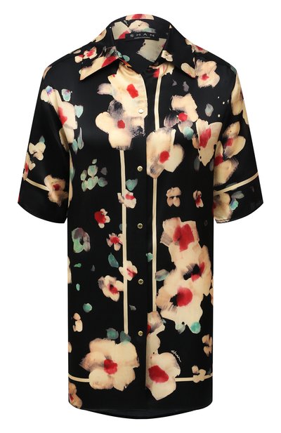 Эта черная рубашка с короткими рукавами поможет ощу тить прохладу ночного японского сада как дома, так и на пляже, залитом солнцем. Хрупкие цветы сакуры словно вот-вот осыплются с модели от дуновения свежего весеннего ветра, легкости которого не уступает тончайший шелк. Нежный материал мягко струится, подчеркивая свободный крой со встречной складкой сзади.