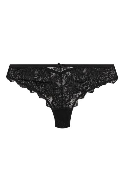 В черных трусах соединили комфорт и визуальную эстетику. Нежный эластичный тюль мягко облегает фигуру и не сковывает движения тела. Ажурная швейцарская вышивка подчеркивает крой белья, края обрамляют фестоны, а атласные ленты акцентируют внимание на V-образном вырезе сзади.