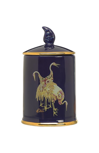 С помощью яркого интенсивного аромата парфюмированной свечи легко превратить окружающее пространство в зеленый весенний сад, наполненный благоуханием цветущих фруктовых деревьев. Торжественная многогранная композиция дарит атмосферу радости и уюта. Для создания подсвечника мастера бренда использовали глянцевую керамику с узорами в виде цапель.