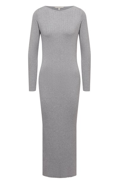 Серое платье из весенне-летней коллекции – тот самый случай, когда элегантность идет рука об руку с комфортом. Модель, полностью очищенную от любого декора, выполнили из фактурного эластичного трикотажа на основе шелковистой вискозы. Изделие из такого материала мягко облегает фигуру, приятно ощущается на теле и не сковывает движения.