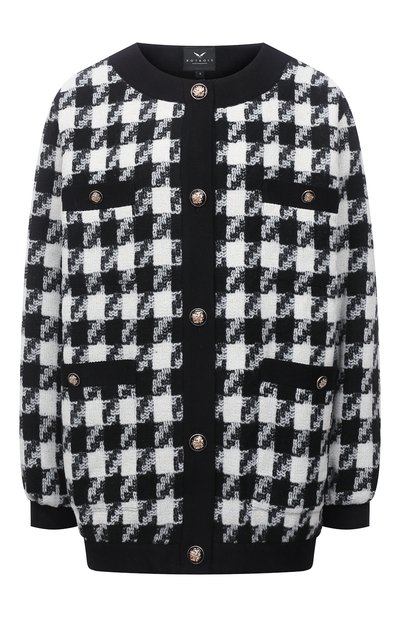 Прямой кардиган из фактурного полушерстяного твида в черно-белую крупную клетку пье-де-пуль вошел в коллекцию сезона осень-зима. Каждую деталь подчеркивает широкий кант, на котором особенно эффектно смотрятся пуговицы с золотистым геральдическим узором. Наши стилисты предлагают составить монохромный образ с парной юбкой, блузой молочного оттенка и туфлями ей в тон.