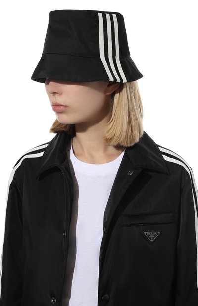 Белоснежная панама долго не потеряет безупречный внешний вид. В этом ей поможет легкий прочный нейлон, который изготовили из выловленного в океане мусора. Мягкий, непродуваемый ветром материал стал подходящим фоном для трех черных полос, говорящих о сотрудничестве с командой adidas. Этот декор на тулье и нешир оких полях выполнили из тисненой кожи Saffiano.