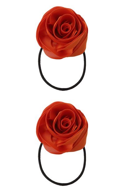 Резинки с текстильным декором в виде крупных оранжевых роз помогут сделать прическу наряднее. Для изготовления модели мастера марки использовали прочный эластичный материал. Аксессуары из него долго не растягиваются, не запутываются в волосах и плотно фиксируют локоны.