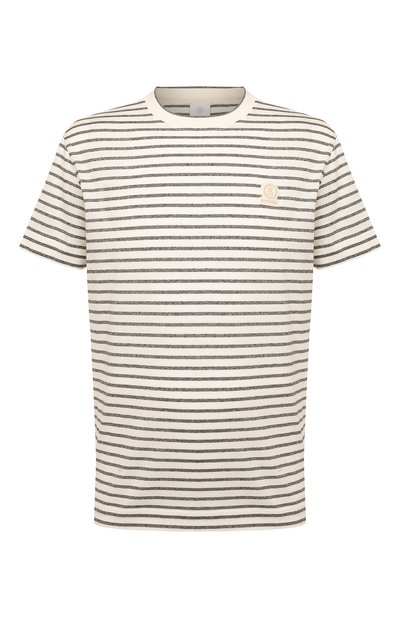 Для создания футболки из весенне-летней коллекции бренда, основанного Вилли Богнером, использовали мягкий тонкий хлопок. Нежное джерси комфортно облегает тело и не перегревает кожу даже в жару. Жаккардовое переплетение нитей сложилось в крупный полосатый мотив.