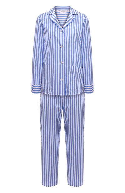 Пижама в голубую полоску идеально подойдет и для сна, и для домашнего отдыха. Рубашку с отложным воротником и длинными рукавами и укороченные брюки с эластичным поясом сшили из мягкого хлопкового поплина. Этот материал хорошо пропускает воздух и отводит тепло от кожи, поддерживая комфортную температуру.