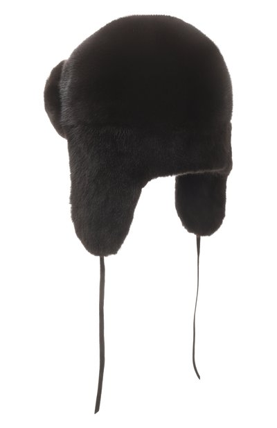 Черная шапка-ушанка с широкими наушниками и длинными завязками, позволяет экспериментировать с внешним видом аксессуара. Мастера марки сшили модель из густого меха норки, который поддерживает комфортную для головы температуру, а внешнюю сторону выполнили из плотного матового текстиля.