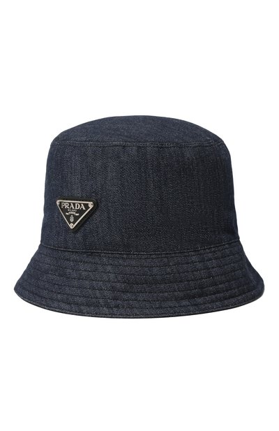 Синяя джинсовая панама с широкими стегаными полями выполнена из прочного гладкого хлопка. Ткань хорошо пропускает воздух, а головные уборы из нее долго сохраняют первоначальную форму и не мнутся. Аксессуар украшен небольшим металлическим треугольником с логотипом бренда.