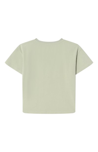 Основные требования, предъявляемые к детской одежде: легкий дышащий материал и крой, не сковывающий движения. Светло-зеленая прямая футболка из мягкого хлопка полностью соответствует этим пунктам. Благодаря добавлению прочных нитей эластана в состав модель лучше тянется. Спереди — крупный принт в виде сердца яркого желтого цвета.