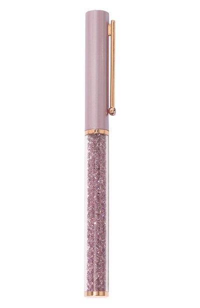 На создание этой шариковой ручки команду бренда вдохновили футляры для декоративной косметики. Аксессуар из полированного металла с покрытием цвета розового золота заполнен сотнями миниатюрных сиреневых страз, переливающихся в лучах света. Клипса на колпачке украшена более крупным кристаллом такого же цвета.