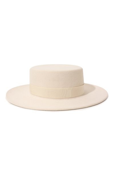 В исполнении команды бренда это канотье выглядит более строго, чем традиционные модели. Такое впечатление создает плотный шерстяной фетр молочного оттенка вместо легкой плетеной соломки. Неизменным остался отточенный силуэт с широкими полями и невысокой тульей, дополненной репсовой лентой.