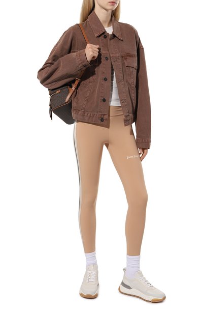 Легинсы насыщенного фиолетового оттенка выглядят провокационнее за счет полупрозрачных сетчатых вставок в тон. Мастера марки использовали для пошива модели тонкий мягкий полиамид, который благодаря добавлению прочных нитей эластана слегка тянется, идеально облегая фигуру. Широкий пояс украсили крупным логотипом бренда.