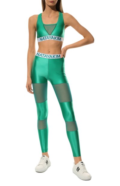 Насыщенный фиолетовый оттенок этого кроп-топа только выиграл от металлизированного блеска прочного полиамида, из которого сшили изделие. Полупрозрачные сетчатые вставки придают вещи провокационный вид, а широкий эластичный пояс с крупным логотипом бренда отвечает за идеальную посадку.