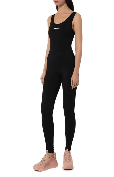 Для пошива комбинезона с широкими штрипками и верхом, напоминающим майку, использовали шелковистую быстросохнущую микрофибру. Материал легко тянется во все стороны, поэтому изделие обходится без застежки и обеспечивает полную свободу движений во время занятий спортом.