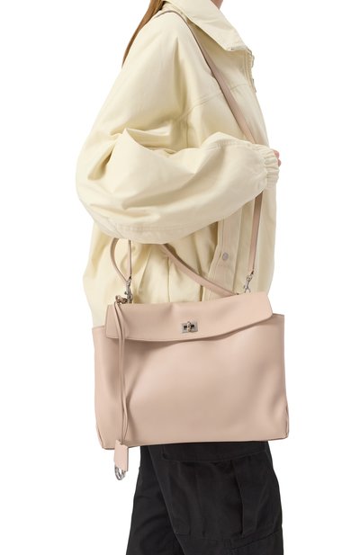 | Параметры изделия Высота 19,8 см, ширина 25 см, глубина 11 см, длина ремешка 124 см. В комплект входит: отстёгивающаяся ручка длиной 42 см; брелок. |
