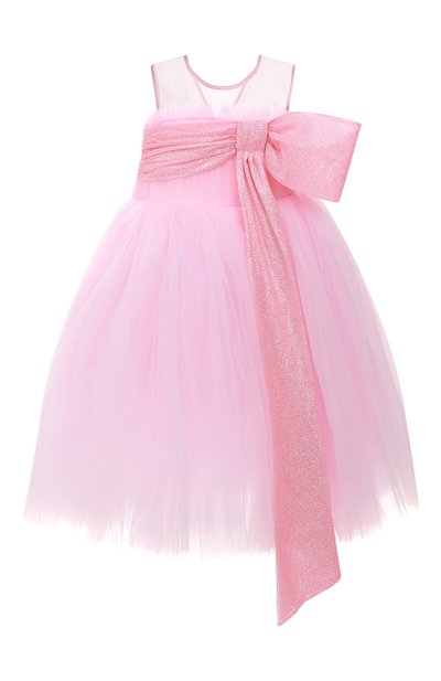 Нежным розовым цветом и пышным многослойным подолом это длинное платье напоминает воздушный клубничный десерт. Эффект усиливает материал: для пошива модели с иллюзией бюстье использовали тонкий легкий тюль. Лиф с полупрозрачной вставкой и молнией сзади опоясывает широкая мерцающая лента, словно завязанная большим бантом спереди.