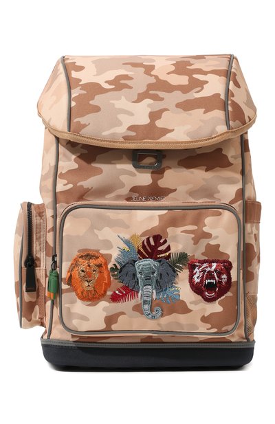 Команда марки сделала рюкзак с камуфляжным принтом легким, но прочным, выбрав для создания непромокаемый полиэстер с тефлоновым покрытием. Выполненные из такого же материала широкие регулируемые лямки с поперечными ремешками и плотная эргономичная спинка помогают перенести 50% веса на бедра, поэтому спина и плечи первоклассника от шести лет устанут меньше. Модель с двумя внешними карманами и держателем для бутылки воды дополнили светоотражающими деталями, делающими ее заметной в темноте.