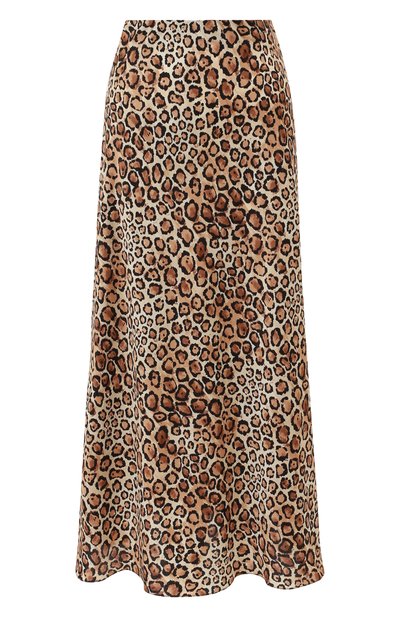 Для пошива расклешенной юбки с классической посадкой, без пояса мастера марки использовали тонкий легкий атлас с коричневым леопардовым принтом. Приятный на ощупь материал с ш елковистым блеском почти не мнется и не вытягивается после стирок. Такая модель поможет расставить акценты в ансамбле из черных вещей.