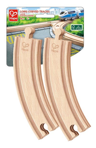 Четыре изогнутых детали помогут задать нужную форму трассе из железнодорожной коллекции бренда. Каждую секцию выточили из легкой и прочной буковой древесины, сертифицированной по стандарту FSC, и отшлифовали до идеальной гладкости. Изделия подходят для детей старше трех лет.