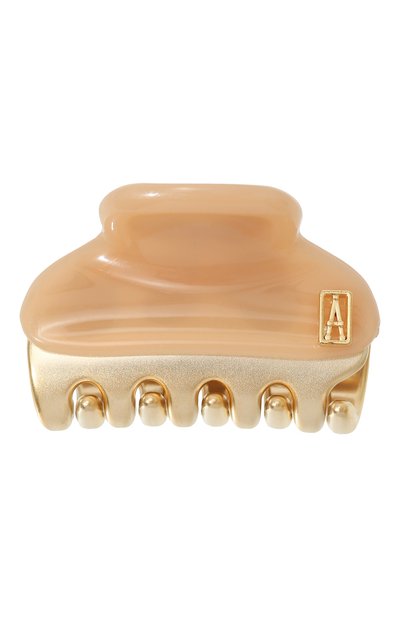 Небольшая заколка из легкого прочного ацетата, отшлифованного до идеальной гладкости, плотно фиксирует пряди в прическе, не спутывая их. Изготовленный вручную лаконичный аксессуар с длинными зубцами украс или миниатюрной заклепкой в виде эмблемы марки.