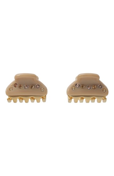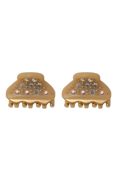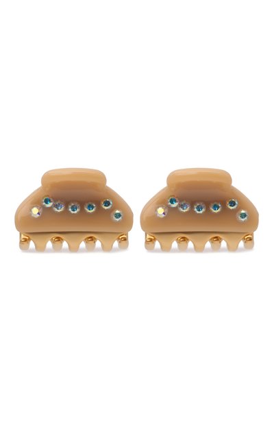 Для изготовления небольшой заколки мастера марки использовали легкий прочный ацетат, вручную отполированный до идеальной гладкости. Глянцевому блеску материала вторит сияние крупных кристаллов Swarovski, закрепленных в фирменной технике. В комплекте – два изделия.