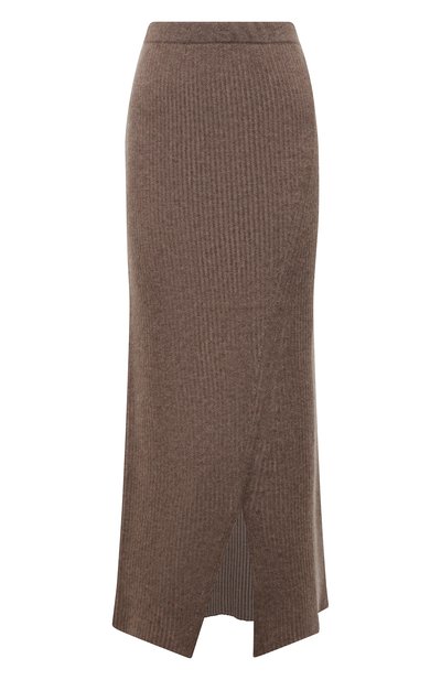 Прямую юбку с невысоким разрезом мастера марки создали из мягкого длинноволокнистого кашемира цвета капучино. Нежный тонкий материал хорошо сохраняет тепло, но не перегревает, поэтому в модели с завышенной посадкой будет комфортно в прохладный день. Наши стилисты считают, что лучшие компаньоны такой вещи — свободный свитер в тон и высокие коричневые сапоги.