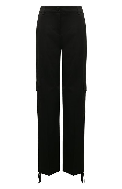 В брюках из прочной хлопковой ткани дизайнер марки сочетала детали от карго и джоггеров. По бокам есть крупные накладные карманы с клапанами, а снизу — кулиска. Вместо эластичной ленты в нее вставили длинный шнурок: так силуэт брючин можно изменять.