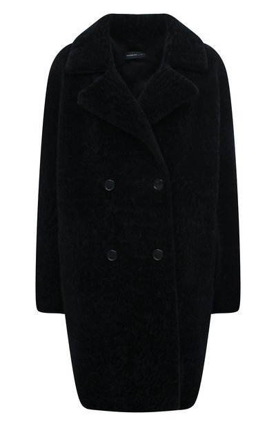Мастера бренда под руководством Славы Маслова сшили темно-синюю шубу из мягкой овчины. Густой ворс предварительно остригли, чтобы сделать поверхность похожей на шелковистый муар с характерными объемными переливами цвета. Получившийся материал хорошо защищает от морозов и ветра, не добавляя лишнего объема. Двубортную модель со спущенной линией плеч дополнили широкими лацканами.