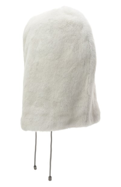 Серый объемный капюшон почти не ощущается на голове, но при этом хорошо защищает от холода. Такой комфортной модель сделал легкий шелковистый мех норки. Команда марки продемонстрировала исключительное мастерство, филигранно раскроив шкурки на узкие ленты, а затем вручную связав их в эластичное единое полотно с рельефной фактурой.