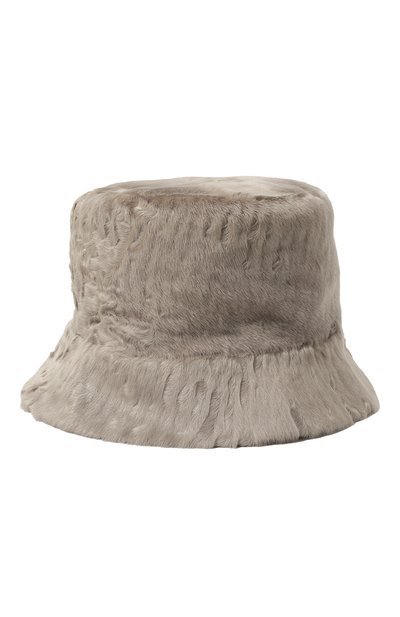 В пепельно-бежевой панаме главную роль сыграла фактура. Для пошива модели мастера марки использовали шелковистый мех каракульчи с характерным муаровым рельефом, напоминающим дюны. Головной убор из такого материала деликатно мерцает на солнце.