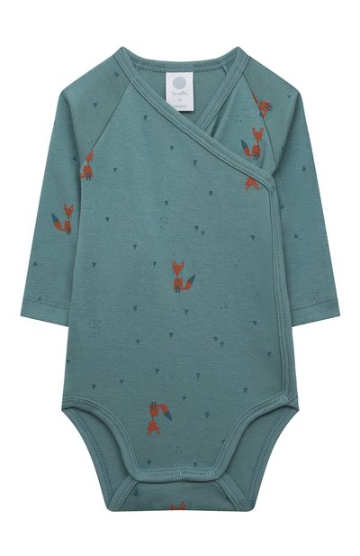 Мастера марки сшили боди из нежнейшего джерси, для создания которого использовали чистый органический хлопок, сертифицированный по стандарту Oeko-Tex 100. Он гарантирует, что насыщенный зеленый цвет модели придали гипоаллергенными красителями и ими же нанесли ненавязчивый принт. Модель с рукавами реглан и запахом не будет сковывать даже при активных движениях ребенка.