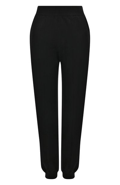 Джоггеры уже давно перешли из разряда спортивной в ранг удобной повседневной одежды. Например, эту черную модель с широким эластичным поясом и прошитыми стрелками наши стилисты предлагают носить с поло, жакетом и балетками. Комфорт в течение дня обеспечит тонкий легкий трикотаж, связанный из мягкой шерсти и нежного кашемира.