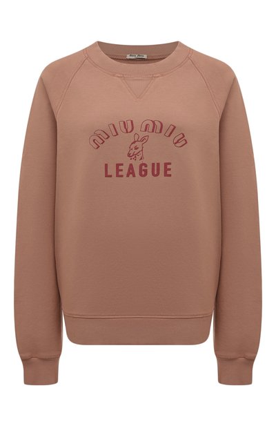 Свитшот спокойного темно-бежевого оттенка выполнили из плотного хлопка с фактурной изнанкой. Для производства материала использовали премиальные длинные волокна, поэтому модель получилась особенно мягкой и приятной на ощупь. Изделие силуэта oversize украсили спереди крупным розовым мотивом с логотипом бренда.