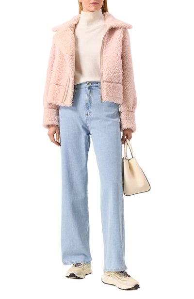 Миучча Прада адаптировала легкую джинсовую куртку для холодов, превратив ее в дубленку из густой овчины. Бархатистый материал намного лучше денима защищает от морозов и ледяного ветра и почти не отличается от ткани визуально. Зимнюю верхнюю одежду в кремовой модели выдает волнистый мех на отложном воротнике и вдоль планки с кнопками.