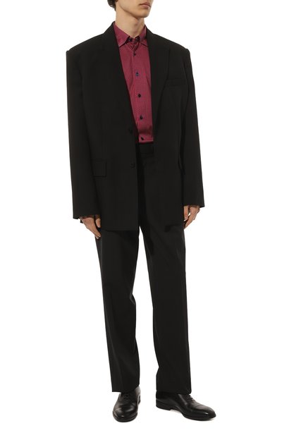 Бордовая рубашка поможет разбавить строгий офисный гардероб, но при этом не станет противоречить дресс-коду. Для изготовления модели Миучча Прада и Раф Симонс выбрали дышащий хлопковый поплин. В состав включили волокна нейлона, поэтому шелковистая, приятная на ощупь ткань почти не мнется.