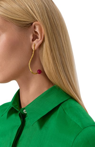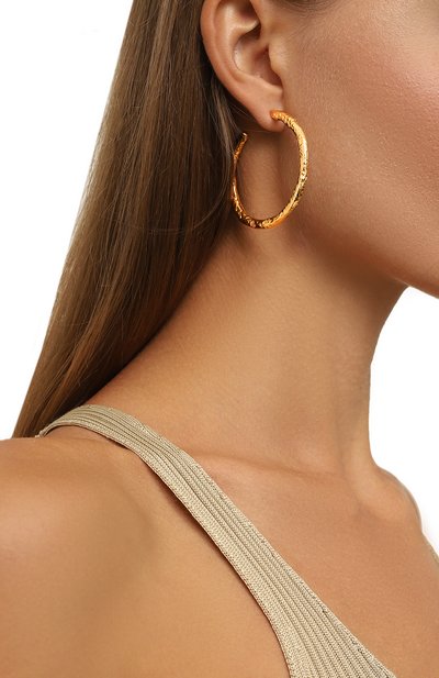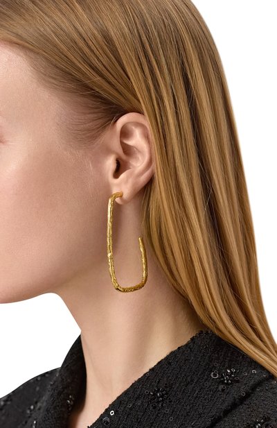 Для изготовления серег использовали гипоаллергенное серебро 925 пробы, покрытое слоем золота. Изделие украсили тисненым скульптурным мотивом, на создание которого дизайнеров бренда вдохновили зубчатые башни португальского дворца Pena palace в Синтре (пригород Лиссабона).