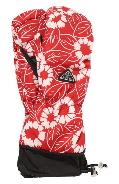 Для пошива красных варежек мастера марки использовали непродуваемый переработанный нейлон с крупным цветочным принтом, вдохновленным узорами на гавайских рубашках. Яркому орнаменту противопоставили черную текстильную манжету и отделку из зернистой кожи, которой дополнили аксессуар с внутренней стороны ладони.