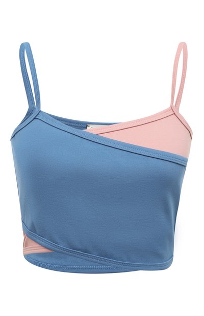 Мастера марки использовали для пошива кроп-топа, выполненного в технике color block, тонкую шелковистую вискозу, которая пропускает воздух так же хорошо, как хлопок, а на ощупь напоминает шелк. Чтобы вещь комфортно садилась по фигуре и не сковывала движения, в состав материала добавили эластичные нити нейлона.