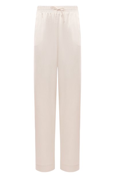 Прямые молочно-белые брюки в исполнении команды марки получились особенно комфортными. Для пошива модели использовали гладкий вискозный атлас, который нежно касается кожи, хорошо пропускает воздух и не мнется, долго сохраняя опрятный вид. Чтобы сделать посадку на талии максимально удобной, широкий эластичный пояс дополнили регулируемой кулиской, как у джоггеров.