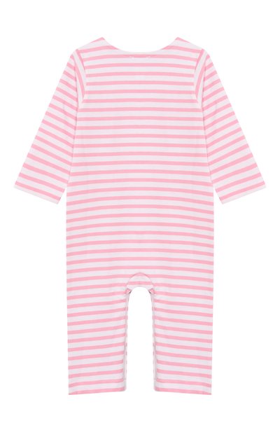 Синий комбинезон с длинными рукавами и боди в тон сшиты из приятного на ощупь хлопка джерси с гладкой шелковистой поверхностью. Гипоаллергенный эластичный материал хорошо пропускает воздух, а продуманный крой не ограничивает движения ребенка. Оба изделия украшены белыми логотипами марки.