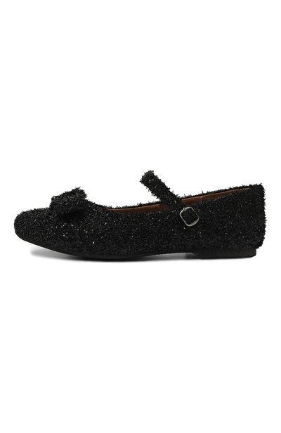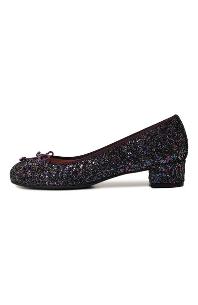 Текстильные туфли на невысоком устойчивом каблуке, покрытые цветным глиттером, органично завершат нарядный образ. Модель с внутренней отделкой из тонкой кожи и эластичной перемычкой украсили на союзке бантом из шнура.