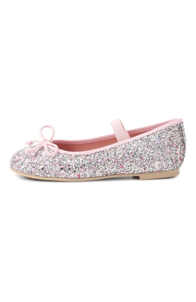 Туфли изготовили из текстиля с глиттером, а для отделки внутри использовали кожу. Вырез укрепили каймой из ленты грогрен, в тон которой выполнили эластичную перемычку на подъеме и бант на мысе.