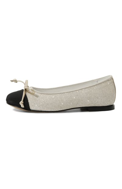 Туфли на небольшом устойчивом каблуке мерцают холодным блеском, отзываясь на каждое движение. Для их создания выбрали мягкий, но прочный текстиль, полностью покрытый серебристым глиттером. Благодаря эластичному ремешку модель с круглым мысом и глубоким вырезом не соскальзывает с ноги.