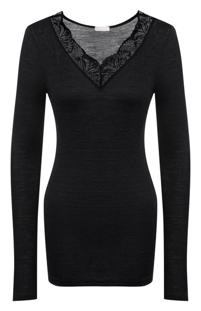 Черный лонгслив с отделкой из цветочного кружева поддерживает естественную терморегуляцию, обеспечивая комфорт во время отдыха. Добиться нужных свойств дизайнерам марки удалось тонким трикотажем на основе шерсти мериноса, которая не только согревает, но и хорошо пропускает воздух, а также отводит излишки влаги. В состав включили волокна шелка, которые сделали материал еще мягче.