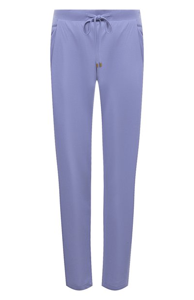 Синие брюки помогут расслабиться после напряженного дня. Исключительно приятной на ощупь, легкой и дышащей модель делает нежный струящийся трикотаж, в котором тонкий хлопок соединили с шелковистым антибактериальным модалом. Широкий пояс- кулиска поможет отрегулировать посадку на талии.
