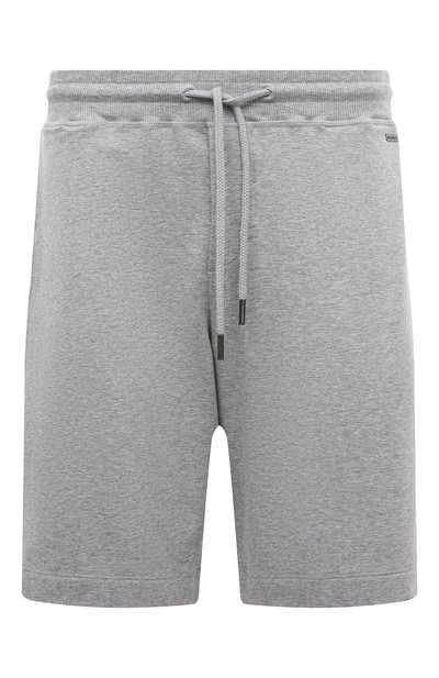 Для пошива серых меланжевых шортов использовали мягкий хлопковый трикотаж терри с добавлением стрейчевых волокон. Материал с фактурной махровой изнанкой приятно ощущается на теле и немного тянется, обеспечивая свободу движений. За удобную посадку на талии отвечает широкий пояс с регулируемой кулиской.